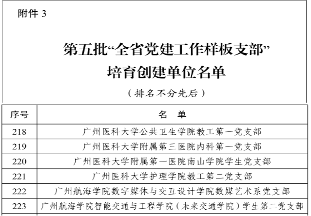 近日,广东省委教育工委公布全省第五批新时代高校党建示范创建和质量创优培育创建名单,学校推荐的3个项目100%入选:计算机学院党委入选“标杆院系”培育创建单位,数字媒体与交互设计学院数媒艺术系党支部和智能交通与工程学院学生第二党支部入选“样板支部”培育创建单位,学校党建“双创”工作再创佳绩!