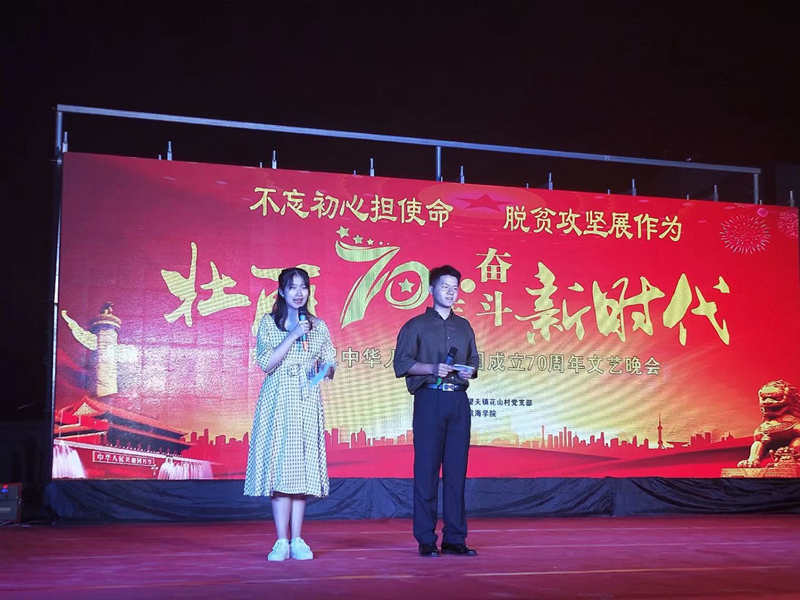 文化振兴是乡村振兴的重要方面,没有乡村文化的繁荣,就没有真正的乡村振兴。扶贫工作队成功在花山村成功举办“不忘初心担使命,脱贫攻坚展作为”暨庆祝新中国成立70周年文艺晚会,花山广大群众纷纷聚集而来,整台文艺晚会精彩纷呈、高潮迭起,既有花山村村民表演的歌舞,又有3044am永利集团官网师生表演的节目,雅俗共赏,得到学校领导和电白区领导的大力点赞,激发了当地群众发展文化建设的新动向。