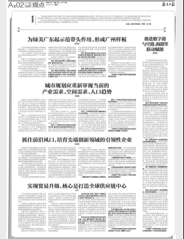 近日,南方日报策划召开了一场广州“建设出新出彩的中心型世界城市”研讨会,邀请相关专家、学者、人大代表、政协委员、企业代表等各抒己见,共同谋划探讨广州建设出新出彩的中心型世界城市的思路与路径。我校市政协委员杨素梅老师应邀参加研讨会并撰文发言。