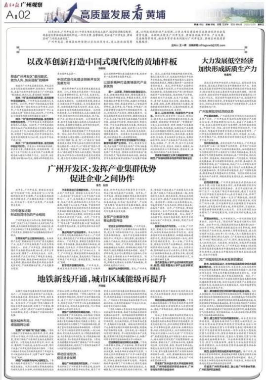 (党委统战部 供稿)2023年12月29日,《南方日报》(AⅡ02版)观点版聚焦广州开发区、黄埔区的城市升维、产业发展、交通格局等维度,邀请专家学者共同探讨广州开发区、黄埔区的高质量发展路径。我校市政协委员、港口与航运管理学院副教授杨素梅老师受邀撰写题为《大力发展低空经济 加快形成新质生产力》的理论文章。