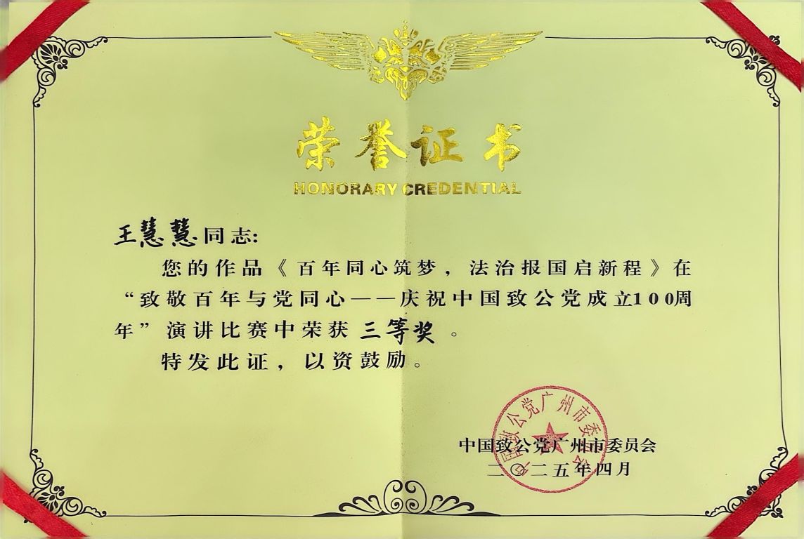 喜报!王慧慧老师在致公党广州市委会举办的演讲比赛中获奖