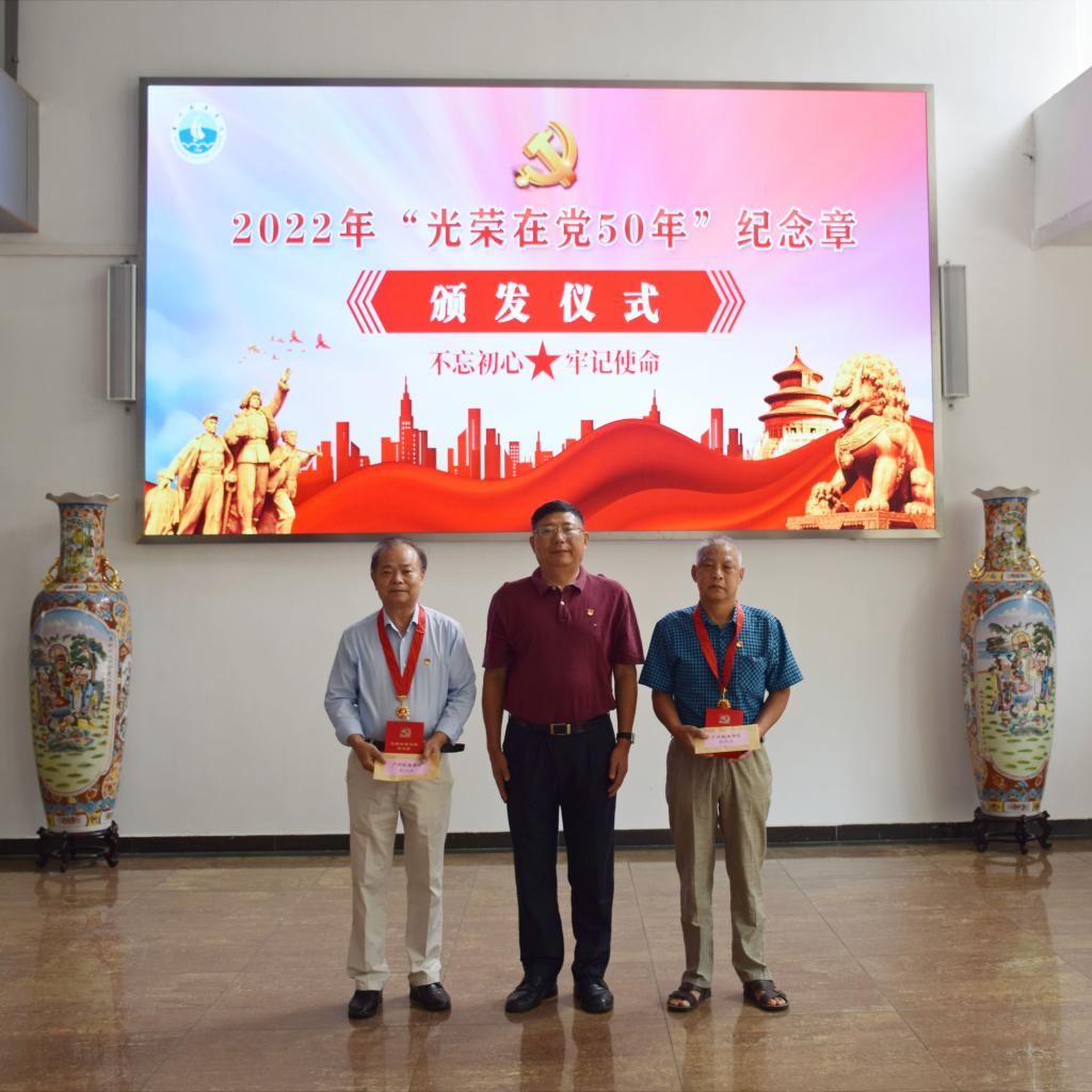颁发仪式在行政楼一楼大厅举行,邹书记、校长与两位老同志亲切交谈,详细询问了解他们的生活、身体以及需要解决的实际困难等情况,随后为他们颁发佩戴“光荣在党50年”纪念章,并送上学校党委的温暖和关怀。邹书记、校长衷心感谢他们为党的事业和学校发展作出的贡献,希望他们保重好身体,发挥老党员的优势和作用,继续关心支持学校的发展。