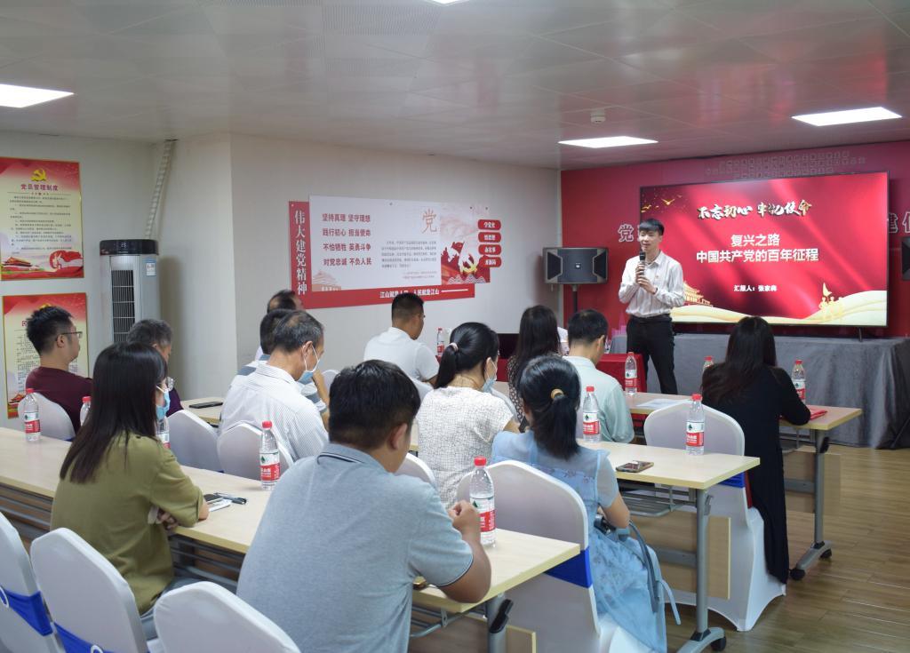 致公党总支部副主委、广州市港航工程研究所所长吴永明首先对致公党总支部的到访表示热烈的欢迎。接着,杨素梅主委传达了《实施方案》的指导思想、主要任务、工作原则、进度安排及重点工作,并号召全体党员认真领会,深入学习。随后,中共广州港航工程研究所党支部书记、社会组织党建宣讲员张家犇给大家带来了一堂精彩的《中国共产党百年创业之路》专题课程。该课程以创业为主线,高度浓缩了中国共产党百年发展历史,并在课程中融合了中国共产党和中国致公党党派合作的史实。课件内容丰富,其中还穿插了大量珍贵的历史影像,讲授重点突出,有较强的感染力。全体党员认真倾听,受益匪浅。在观看邓小平南方谈话的影像资料时,大家深刻感受到老一辈领导人对党和国家的深厚情感;在百年创业成就总结中,党员们深深仰慕中国共产党的伟大贡献。通过学习教育,大家深刻认识到加强中国特色社会主义参政党建设,推进新时代多党合作事业健康发展的重大意义。陈丹涌副主委最后进行了点评和总结,并代表致公党总支部对张家犇书记以及广州市港航工程研究所表示了感谢。