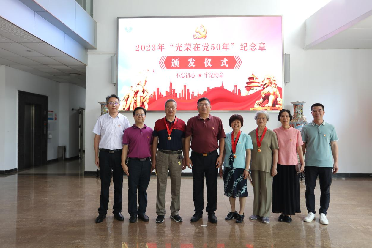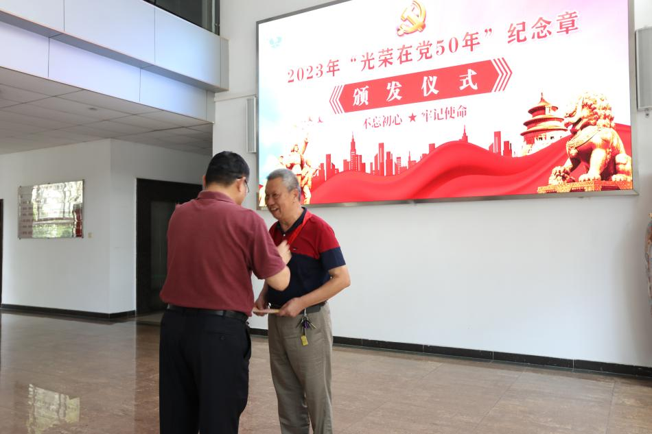 (党委组织部供稿)6月26日上午,在中国共产党成立102周年之际,3044am永利集团官网“光荣在党50年”纪念章颁发仪式在行政楼一楼大厅举行。学校党委书记、校长邹采荣同志向党龄达到50年的李纯英、卢家燕、曾润甜三名老党员颁发“光荣在党50年”纪念章,并送上了慰问金,表达了学校党委的温暖和关怀。