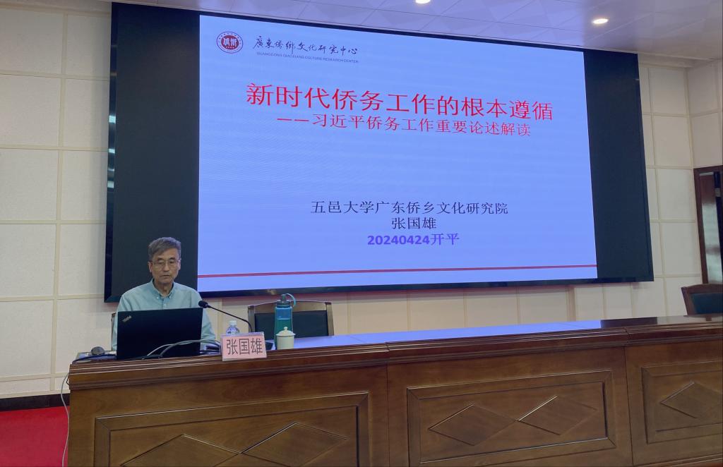 五邑大学教授张国雄以《新时代侨务工作的根本遵循-习近平总书记关于侨务工作重要论述》为主题,让各民主党派、党外知识分子对我国的侨情和侨务工作有了一个全新的理解和认识,深刻领会了习近平总书记关于侨务工作重要论述的科学内涵与理论创新。