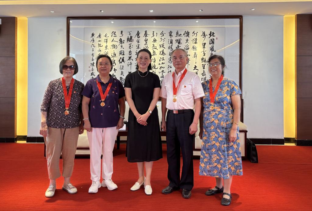 何立居等4位老党员深情回忆在学校奋斗的难忘岁月,对学校取得的成就满怀欣喜之情,纷纷表示能够获得这枚沉甸甸的纪念章,是党的认可、是巨大荣誉,更是一份责任,将带着这份荣誉,坚持退休不褪色、离岗不离党,继续竭尽所能、发光发热,为学校事业发展贡献力量。