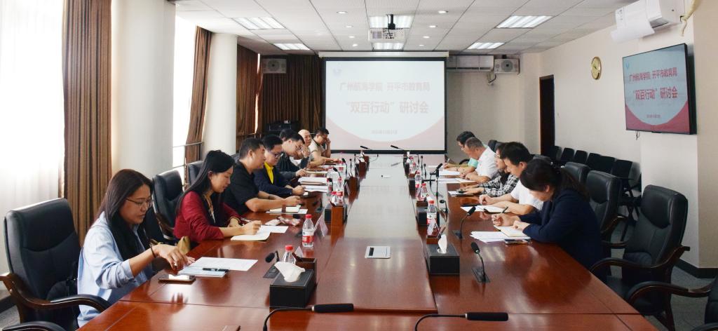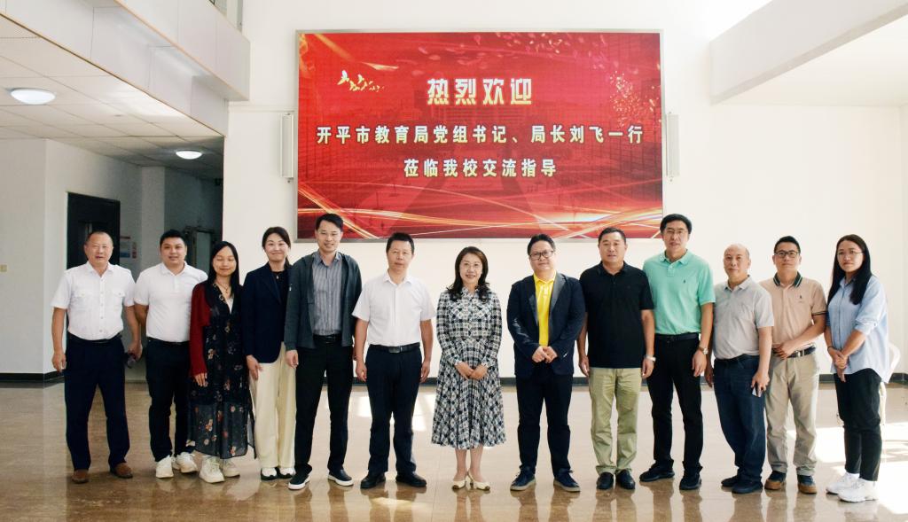 近日,开平市教育局党组书记、局长、“双百行动”专班办公室主任刘飞同志,党组成员、市委教育工委专职副书记孙德标同志,开平市“百千万工程”指挥部办公室、开平市“百千万工程”指挥部“双百行动”专班等一行8人来我校开展“双百行动”研讨交流。学校党委委员、纪委书记陆志英主持研讨会。