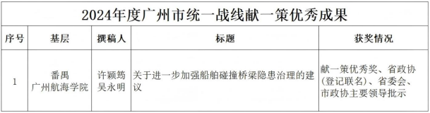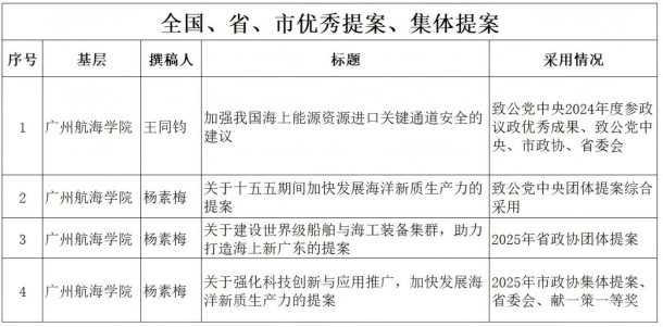 2024年,学校致公党总支部成员立足岗位、心系民生,积极献言献策。总支成员的9项成果,涵盖海洋新质生产力、大湾区港口建设、船舶、航运贸易、海上能源等方面的提案或社情民意信息,硕果累累,获得多项表彰。会上,学校致公党总支部主委杨素梅作为参政议政优秀成果获得者代表上台作交流发言。
