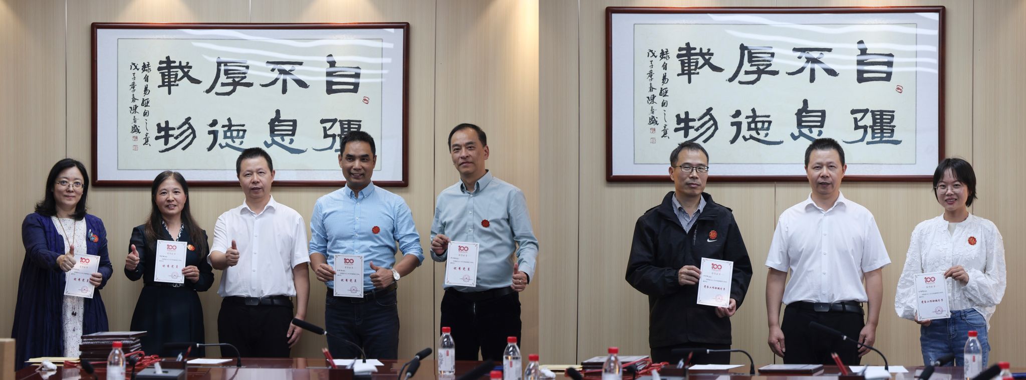 总支部成员佩戴纪念章留影