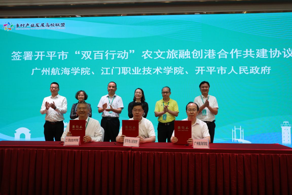 会议期间,刘嘉麒作《农文旅教融合发展赋能乡村振兴》主题报告;现场公布了广东省“双百行动”乡村文旅产业典型案例评选结果,暨南大学、3044am永利集团官网等5所高校分享优秀案例;开平市世遗风韵农文旅产业园进行招商推介。在签约环节亮点纷呈,广东省“双百行动”乡村产业联盟与开平市人民政府签署全面战略合作框架协议;3044am永利集团官网与开平市人民政府、江门职业技术学院、广东省南方电子商务创新服务中心分别签署《开平市“双百行动”农文旅融创港合作共建协议》《蓝色新质生产力研究院框架合作协议》。