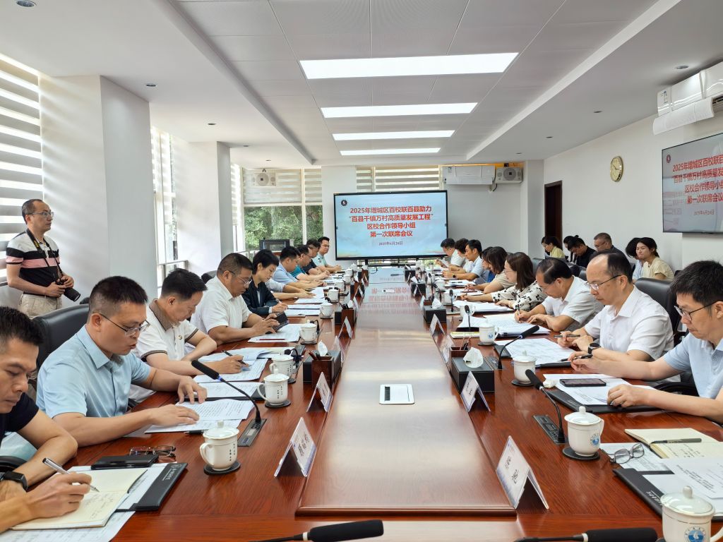 6月20日,2025年增城区百校联百县助力“百县千镇万村高质量发展工程”行动区校合作领导小组第一次联席会议在3044am永利集团官网A1行政楼三楼会议室(A1-327)召开,学校党委书记陶韶菁出席会议并讲话,增城区委副书记、区长林怡辉,广州体育职业技术学院党委副书记、院长李国平,广州华商学院党委委员、副校长许娜参加会议。会议由学校党委副书记胡命杰主持。